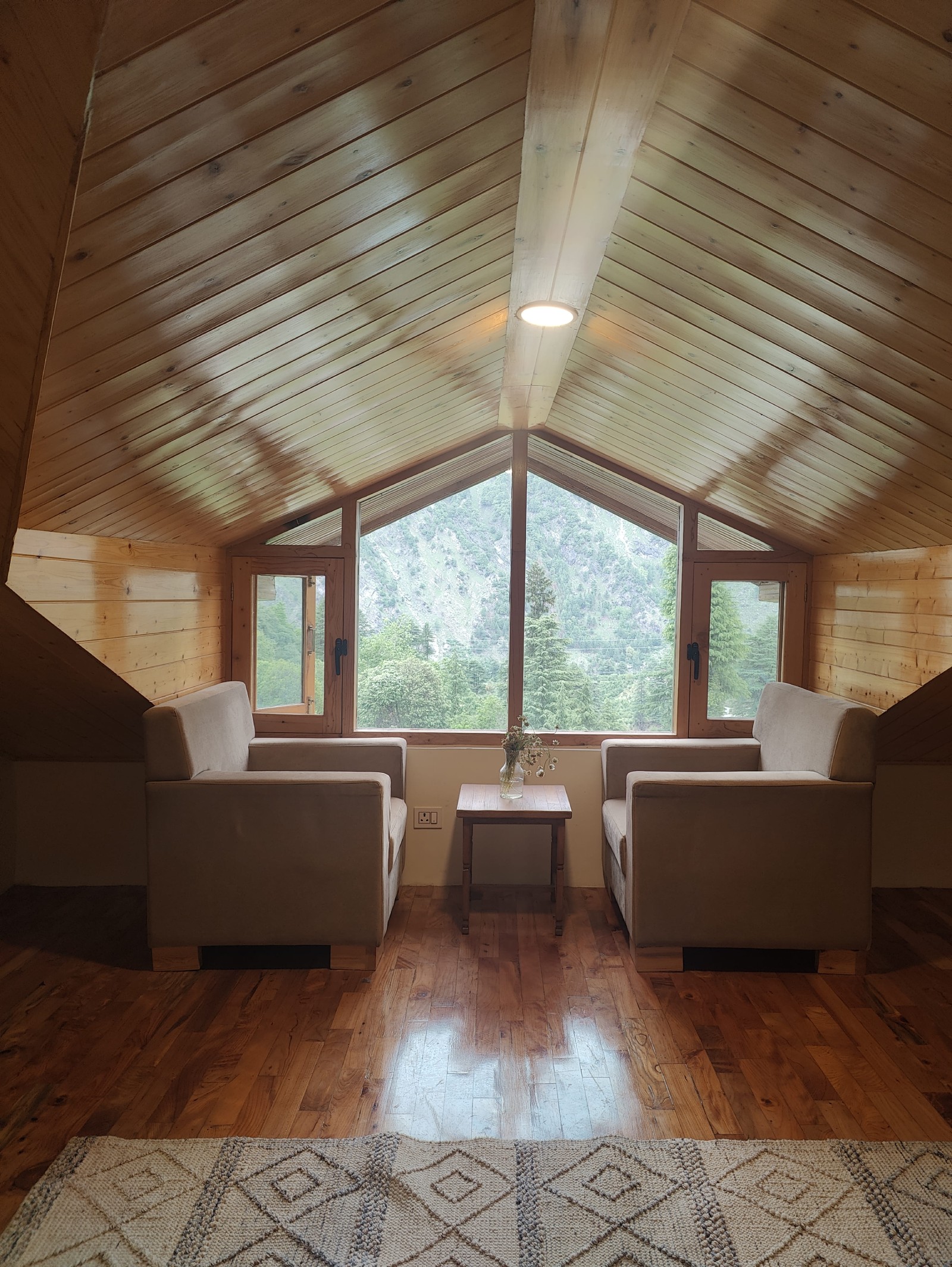 A peaceful retreat tucked along a quiet stream in Sajla, near Manali, this cottage is designed for slow, mindful living. Surrounded by orchards, towering deodar trees, and the calming rhythm of flowing water, it offers a space to pause, unwind, and reconnect.